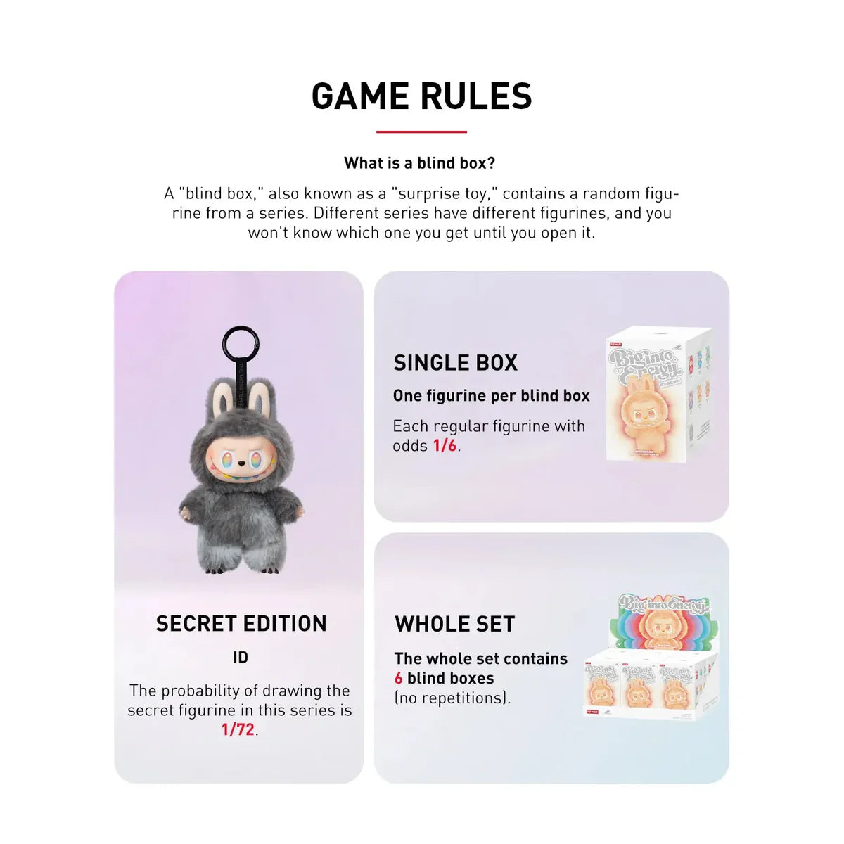 x6 blind box non repeat, have a chance to get secret but not guaranteed.